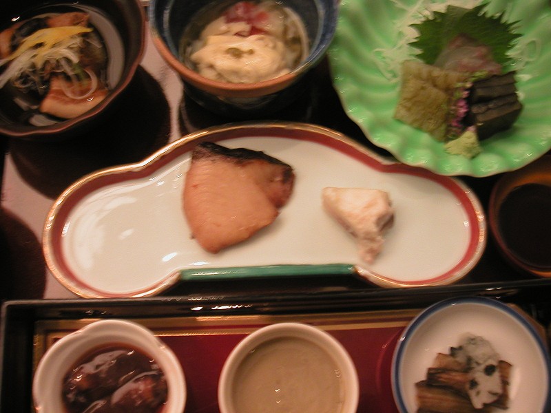 夕食はツアー曰く“富山味覚満載の会席膳”。クロークのあるフロアの宴会場のような場所での食事です。最初から写真のように殆ど全部用意されているタイプの食事だったのですが、スタッフの方が食べ終わったお皿をどんどん片付けるのが気になりました。なんだか急かされている感じがして...。味はまずまずでした。ただ、私の“富山”のイメージは“美味しい!”だったので、そういう意味では特に光るものは感じませんでした。写真↓結構ブレてます