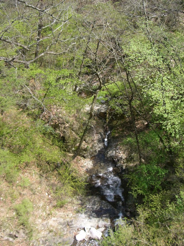滝の向かい側にある滝見台に渡る橋のしたには滝つぼからの渓流が流れてます。