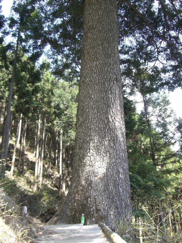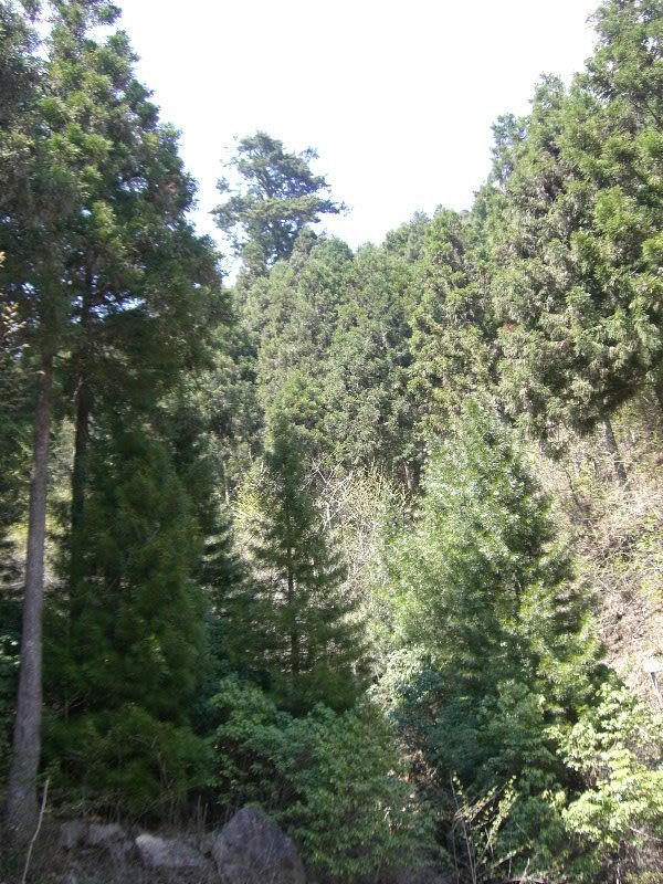 来た道を戻って最初の案内板の所からモミの木を撮影しました。真ん中の飛び出ている木が、多分このモミの木なんじゃないかと思います♪