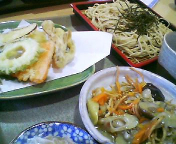 蕎麦は悪くはなかったですが、天ぷらはちょっと残念でした。もっとカラッと揚がるといいです。又、季節の野菜となっていたので期待したのですが、ごくごく普通の野菜のように感じがっかりしました。これに蕎麦がきのあんかけ、お饅頭、お茶がついています。