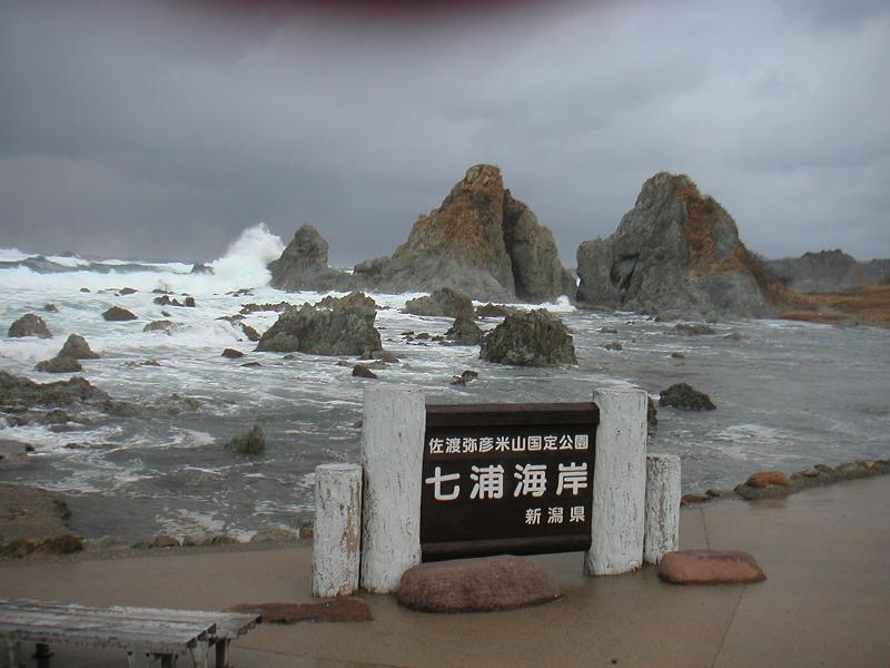 初上陸!2泊3日佐渡の旅(→旅程←)、七浦海岸 夫婦岩に行きました。左が夫、右が夫なんだそうです。