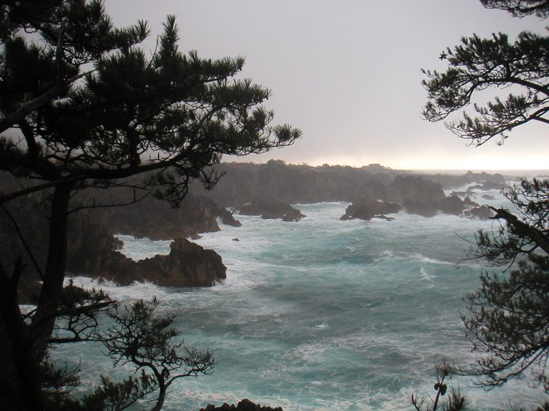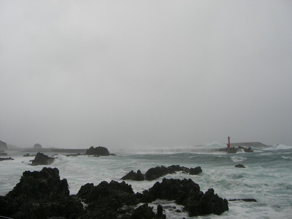 到着したときは小雨だったのですが、出発する頃は雪が降りヒョウまで降ってくるしまつ。七浦海岸の辺りも灰色の雲が立ち込め、波も高めでした。