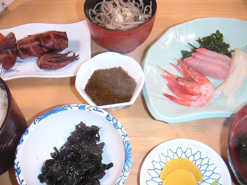 夫婦岩のすぐ近くにある“めおと岩ドライブイン”でツアー付のお昼を食べました。左下の黒いのは確か“あらめ”という海草だったような。ここで頂いた自家製の青海苔が美味しかったのでお土産に購入しました。でも、家に帰ってから食べたらちょっと感じが違いました。なんでだろうなぁ