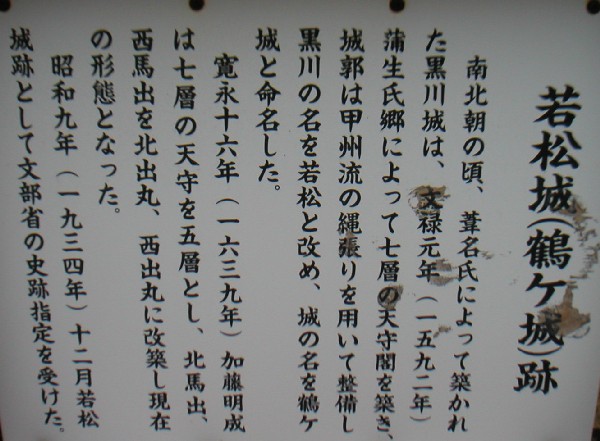 鶴ヶ城(若松城)案内板