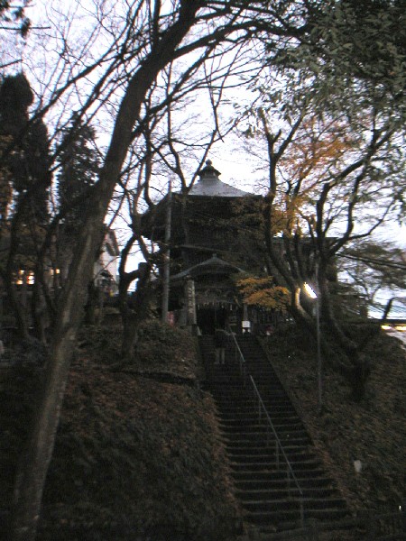 供養塔から少し下るとさざえ堂です。さざえ堂は六角三層のお堂で、国重要文化財に指定されています。1796年に建立され、その高さは16.5メートルです。一方通行構造で上りと下りが全く別の通路を通る為、参拝者同士が擦違う必要が無いので沢山の方が安全にお参りが出来るのだそうです。正式には「円通三匝堂」(えんつうさんそうどう)と云うのだそうです。辺りが暗くなっていく所為か、同行者達は私を残してどんどん下っていってしまいます。少し前にテレビで見て興味を持っていたので本当は入ってみたかったのですが、なんとなくスルーしてしまいました。正直、今、とても後悔しています。同行者達の事なんてほっといて、やっぱり入っておけば良かった
