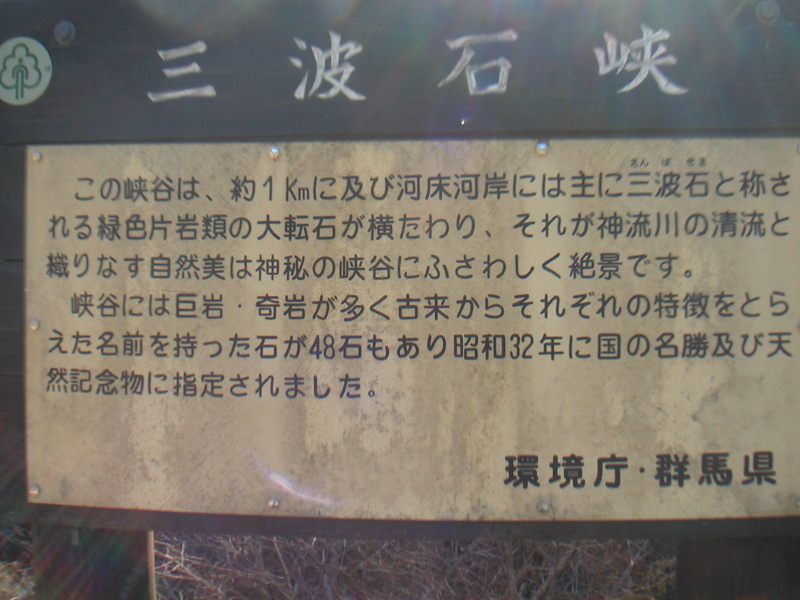 三波石峡 案内板(クリックして頂くと少し大きくなります。)