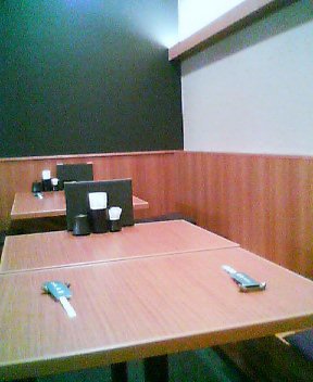 店内は証明が明るくコンクリート敷きなのでちょっと殺伐とした感じに見えますが、清潔に手入れされているという印象をうけました。カウンターは無く、テーブルが2つと座敷が3つあったような気がします。